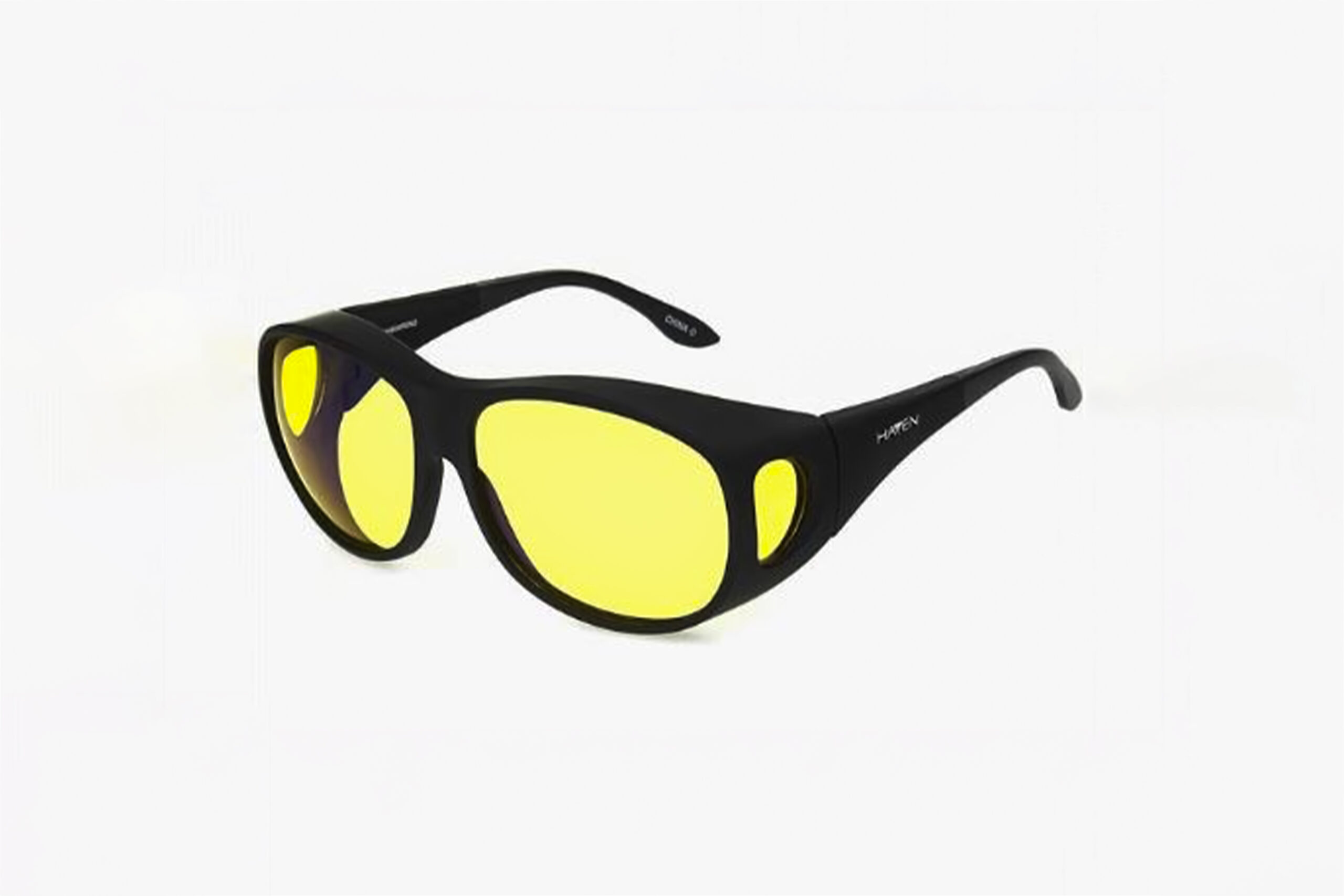 يستخدم نفس التكنولوجيا المستخدمة في نظارات الحماية من الليزر، حيث يقلل الوهج عن طريق امتصاص الأطوال الموجية القصيرة من الطيف المرئي التي قد تتناثر داخل العين.